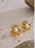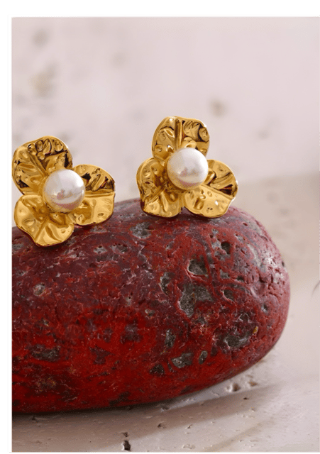 Delicate and timeless, these earrings feature a golden flower design with a luminous pearl at the center. Crafted in stainless steel for durability, they combine elegance with everyday wearability. Perfect for adding a refined touch to any look.