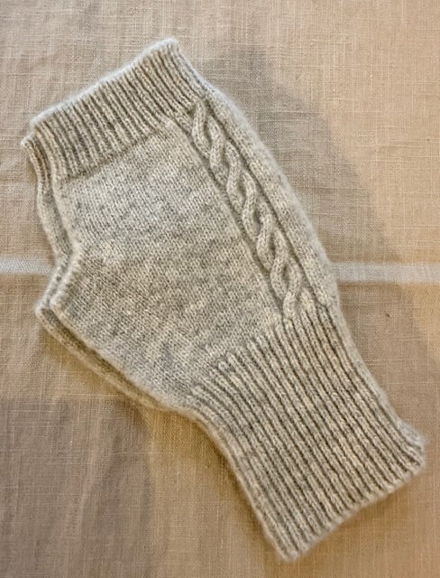100% Pure Wool Cable Knit Fingerless Gloves Grey
