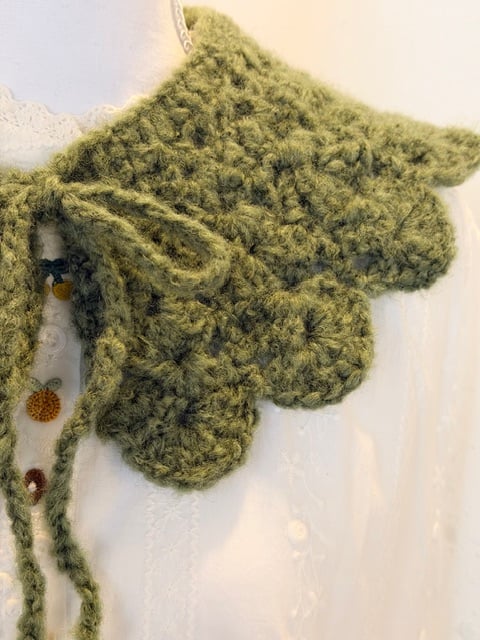 Detachable Crochet Ruffle Collar-Green Wool