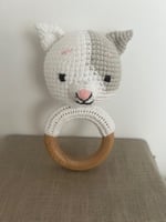 Handcrafted Crochet Cat Rattle Wooden Teether