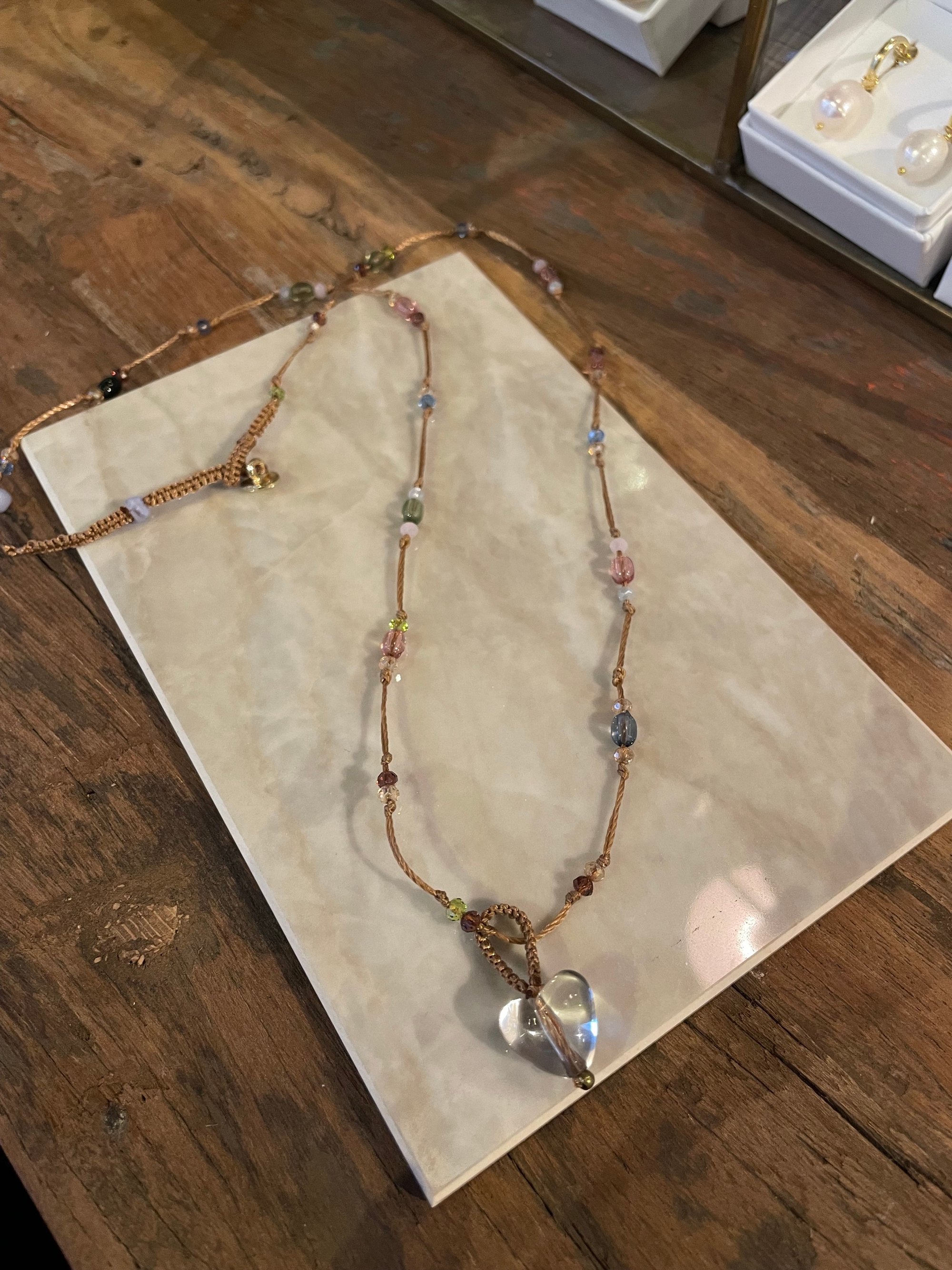 A pretty heart pendant with handmade details on a chain. Crafted in stainless steel, it adds a sweet touch to any outfit. Good for daily wear or special days.