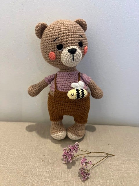 Honey is a handmade amigurumi bear, full of charm and ready for cuddles.