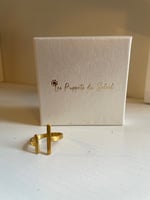 Straight horizontal lines in shiny gold stainless steel. Minimal and stylish everyday piece.