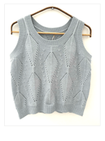 Knitted Sleeveless Sweater Vest Soft Gray/Light Blue Color