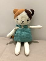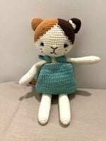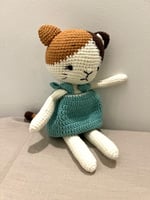 Mila is a gentle little cat with a calm and thoughtful nature. Dressed in her soft teal dress and finished with a delicate bow, she loves quiet moments and warm corners. Her mismatched ears and embroidered whiskers give her a unique, handmade charm that makes each piece truly one of a kind.
