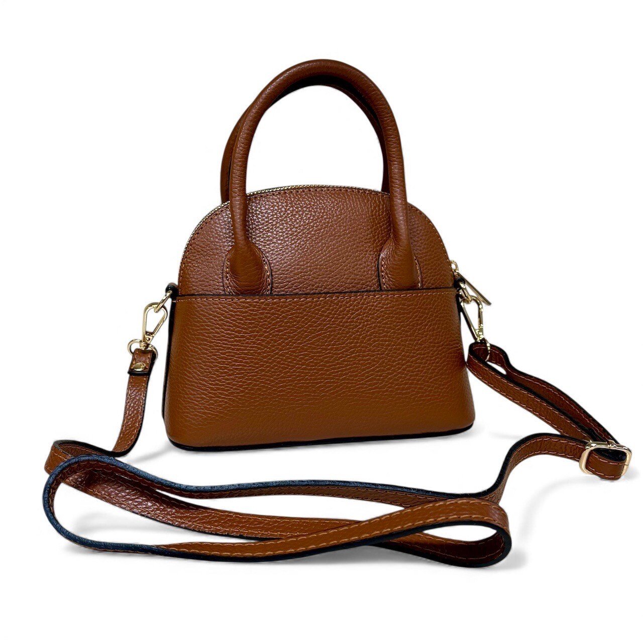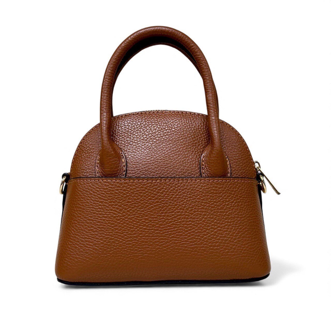 Compact handbag crafted in textured leather. Designed with a structured silhouette and top handles, it also features an adjustable and removable strap for versatile wear.